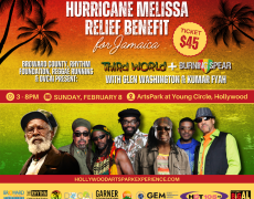 Join legendary reggae icons Burning Spear and Third World as they co-headline a benefit concert to raise urgent funds for communities in Jamaica devastated by Hurricane Melissa. This special evening also honors the legacy of Third World founding member Stephen "Cat" Coore and celebrates the 25th anniversary of Reggae Runnins on HOT 105 FM. The concert features special guest performances by Glen Washington and Kumar Fyah, and all ticket revenue will support vetted relief partners on the ground in Jamaica, including SFL Caribbean Strong and Global Empowerment Mission.